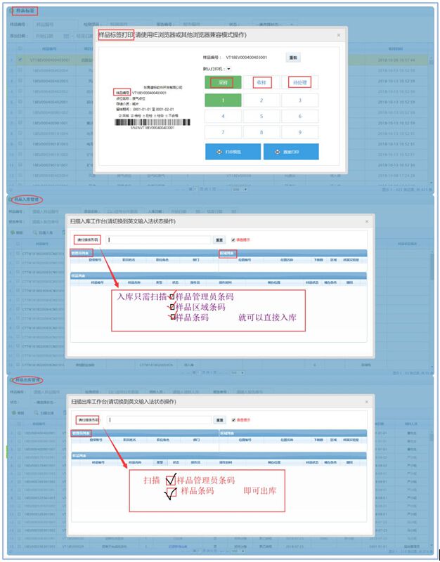 ——樣品分區(qū)域管理:首先對樣品區(qū)域進行劃分,每個區(qū)域設置一個條碼,每個樣品自動生成一個條碼,樣品管理員也設置一個條碼,入庫時只需掃描樣品管理員條碼,樣品區(qū)域條碼,再掃描樣品條碼就可以入庫到指定區(qū)域;領樣時只需掃描樣品管理員條碼和樣品條碼即可出庫;簡化樣品入庫和出庫操作,提高效率。