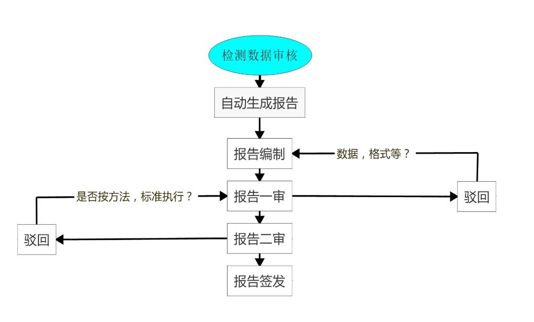 ——檢測數(shù)據(jù)審核通過后,系統(tǒng)自動生成報告,報告編制經(jīng)過修正,按照準則要求進行審批,審批通過后報告發(fā)放。