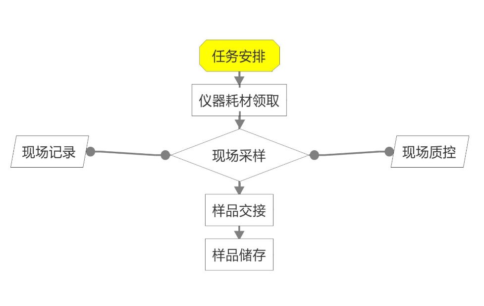 ——采樣主管根據(jù)委托單進行任務(wù)安排,采樣人員根據(jù)任務(wù)安排領(lǐng)取儀器耗材,在現(xiàn)場時做現(xiàn)場質(zhì)控以及記錄現(xiàn)場情況,保證采樣過程和樣品是沒有被污染,不影響檢測結(jié)果的;