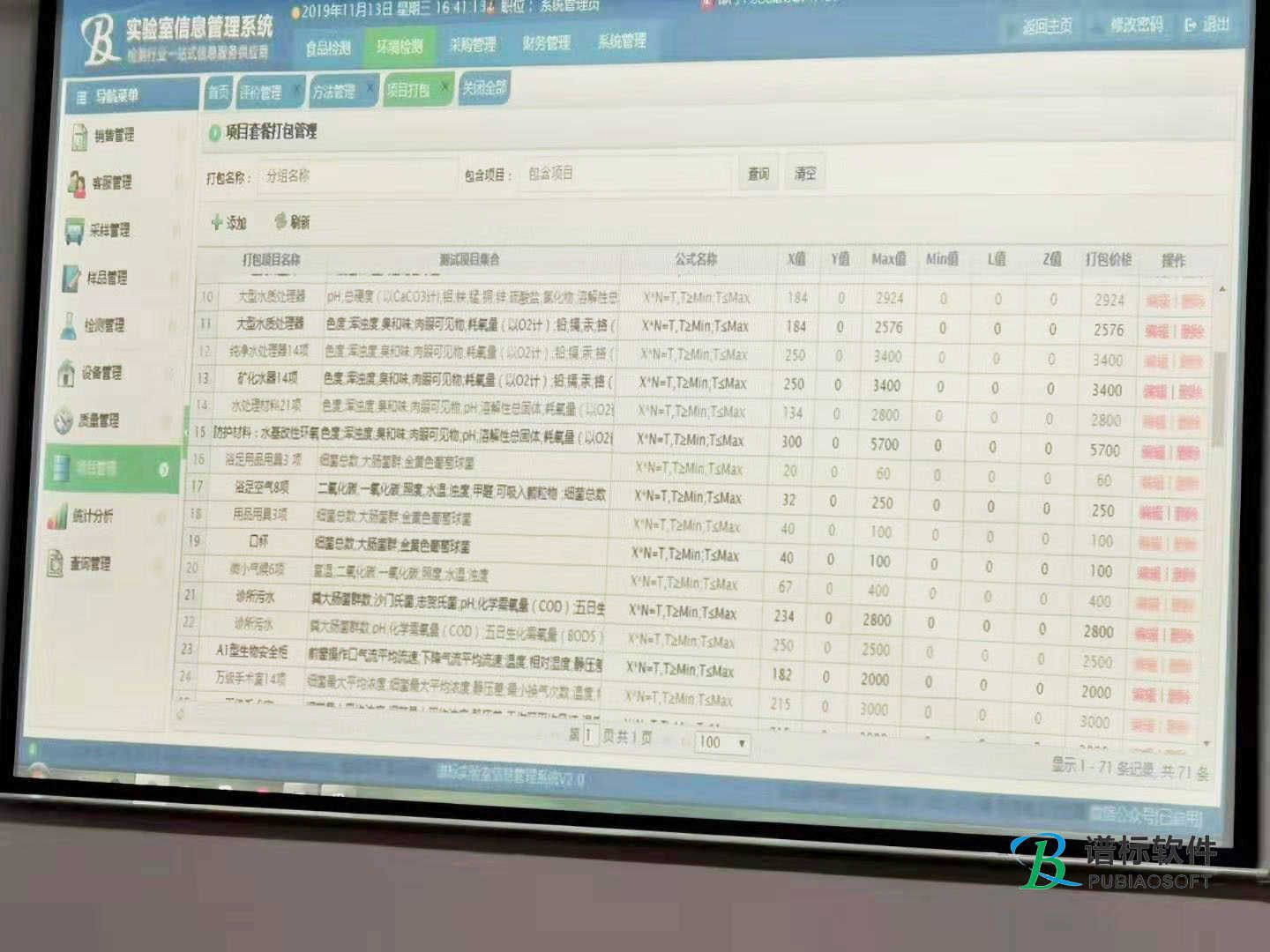 譜標LIMS系統(tǒng)模塊包括:銷售管理、客服管理、采樣管理、樣品管理、檢測管理、設(shè)備管理、質(zhì)量管理、項目管理、財務(wù)管理、統(tǒng)計分析、查詢管理、系統(tǒng)管理等。